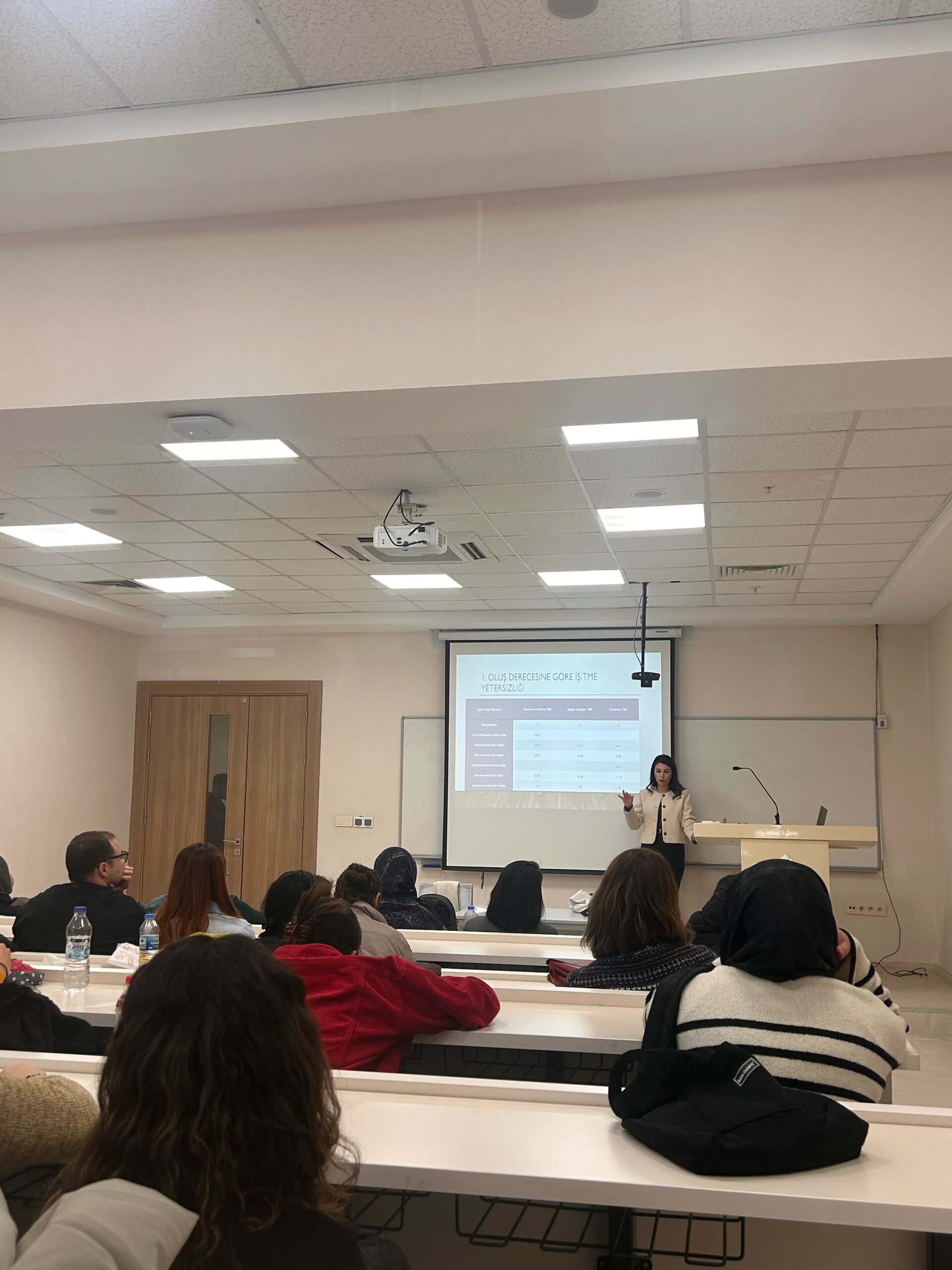 Üniversite ortamında kapsayıcılığı ve erişilebilirliği artırmak, lisans öğrencilerinin sosyal ve akademik yaşamlarında işitme yetersizliği olan bireylerle daha bilinçli iletişim kurmalarını sağlamak, işitme engelli bireylerle iletişimde işaret dilinin önemini vurgulamak ve öğrencilere temel işaret dili becerileri kazandırmak, aynı zamanda toplumda engelli bireylere yönelik olumlu tutum geliştirilmesine katkı sunmak amacıyla işitme yetersizliği olan bireylere yönelik farkındalığın artırılması hedeflemek için İşitme yetersizliği olan bireyleri tanıma ve farkındalık oluşturmak adına uzman odyolog tarafından seminer verilmiştir.